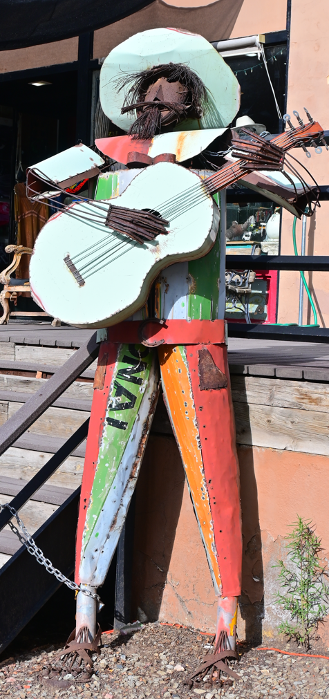 A sunset drive south of Santa Fe took us to Madrid, an enchanting, if touristy, art village with one main street and lots to see, including this handsome musician and an old house sporting a brand new roof.