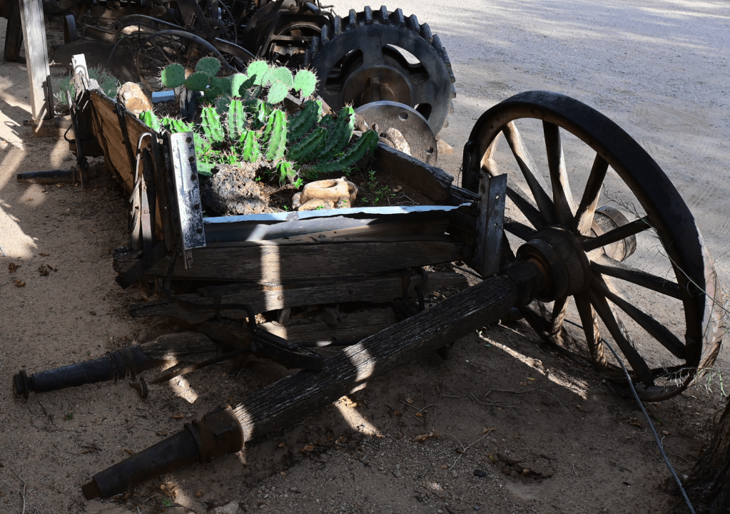 The trading post looked like a super interesting place to check out, but since it was closed, we simply enjoyed the funky old things lying about, especially the cactus in this old broken down wagon.