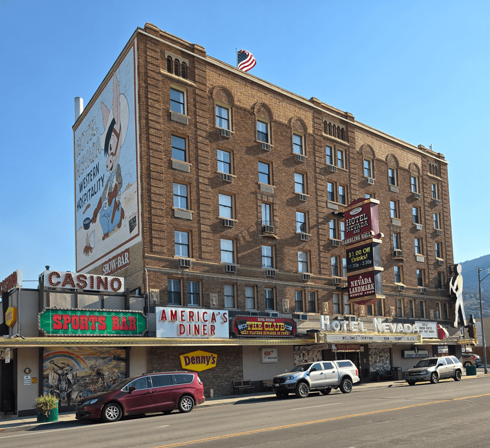 Hotel Nevada in downtown Ely, where Denny’s is a featured restaurant.