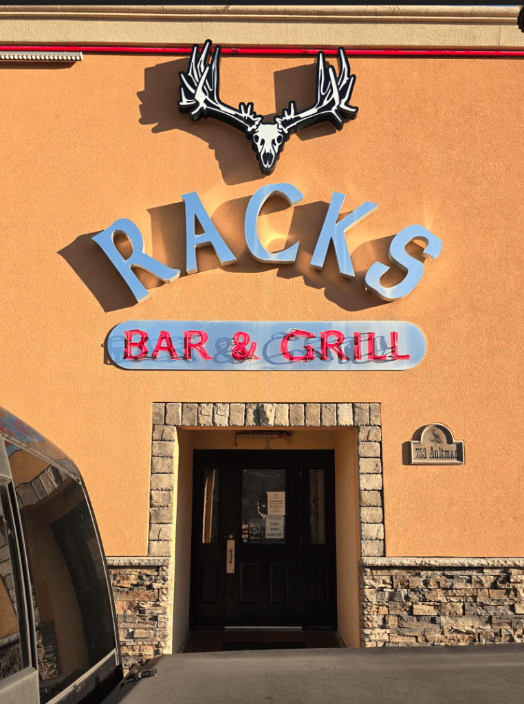Impressive collection of antlers at Bar X Meats!