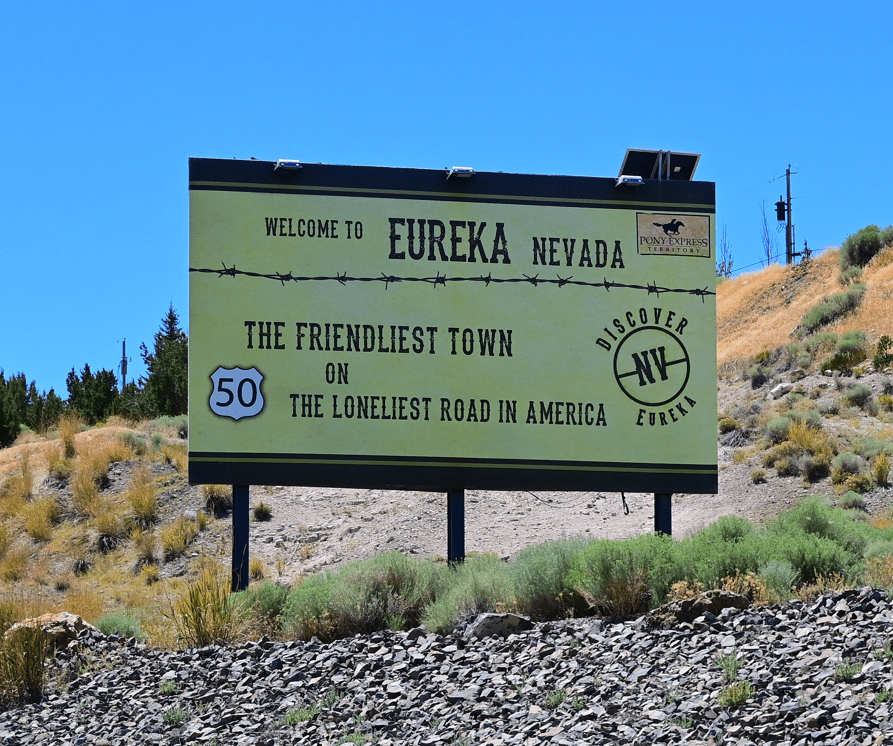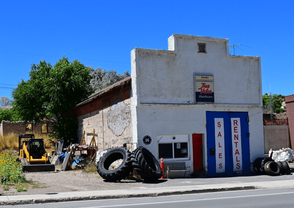 Driving through Eureka, a town with a population of around 265. In its heyday (1876) this silver mining town boasted a population of over 10,000 with over 125 saloons and 25 gambling houses. Not much happening here now.